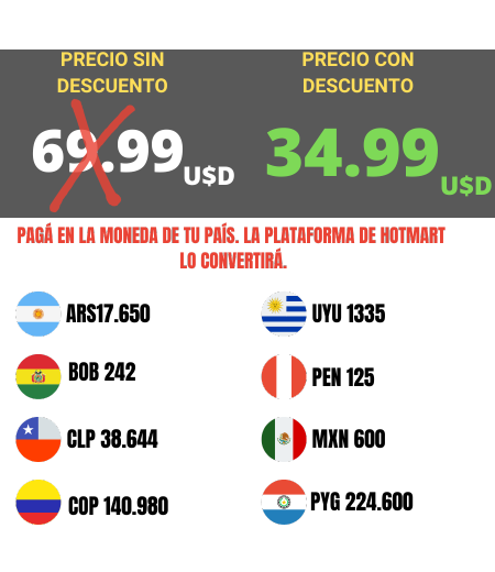 Es completamente normal que sientas miedo a realizar compras en linea ya que muchas personas han realizado malas prácticas, sin embargo nuestro programa está alojado en uno de los mejores y seguros sitios de productos digitales llamado Hotmart. Por tu seguridad puedes buscar toda la información de seguridad y garantia que te brindamos para aprovechar esta oferta sin miedo.